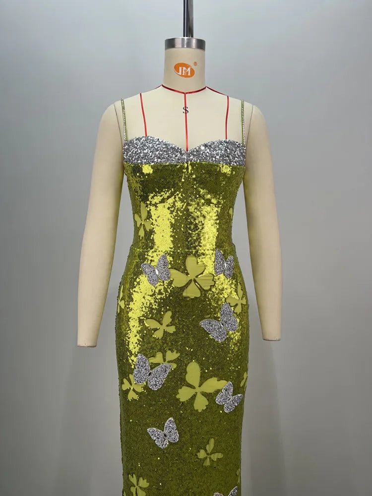 Mint Green Mesh Sequins Maxi Dress