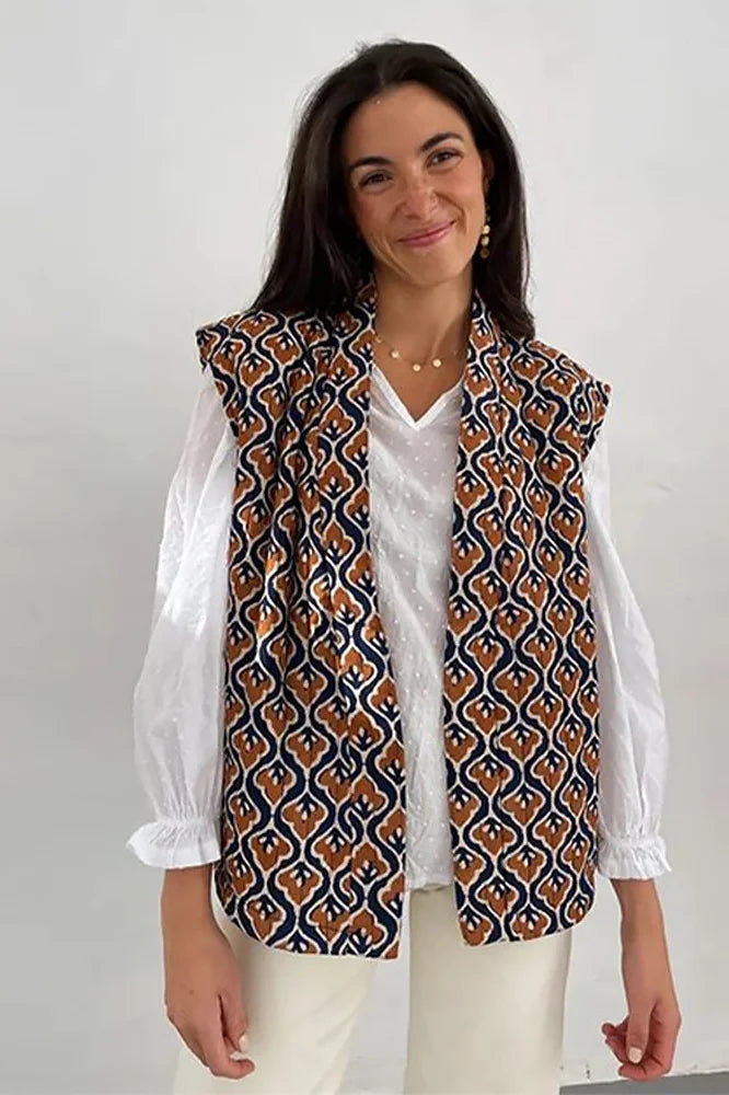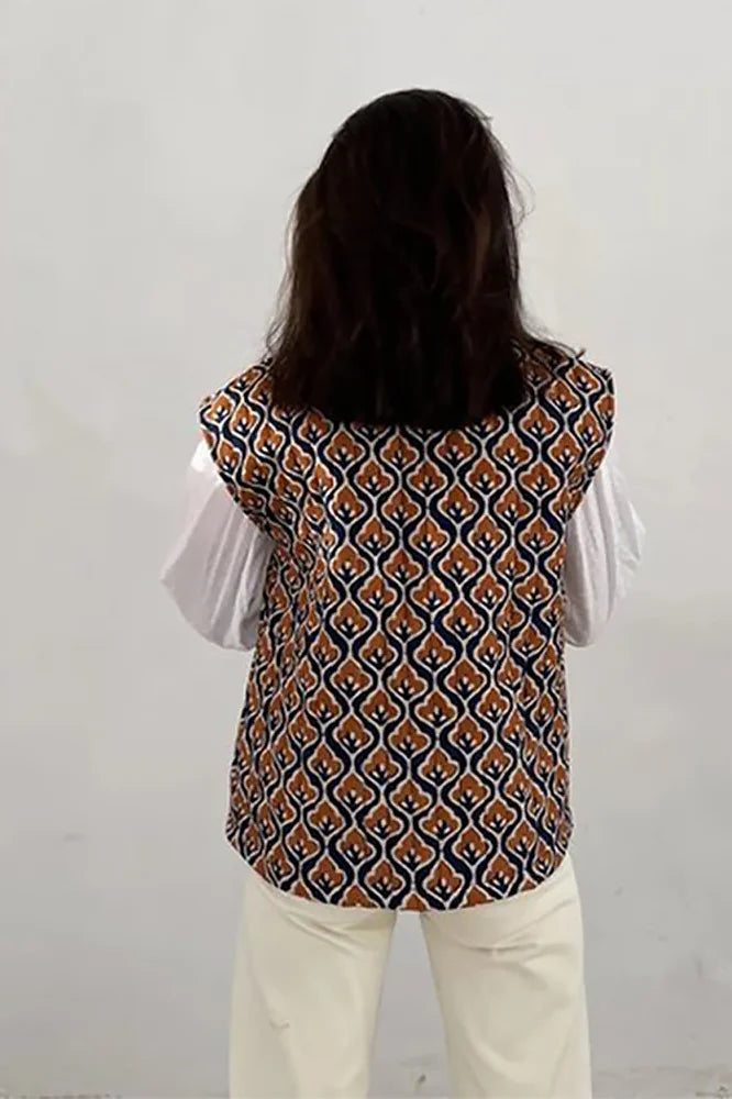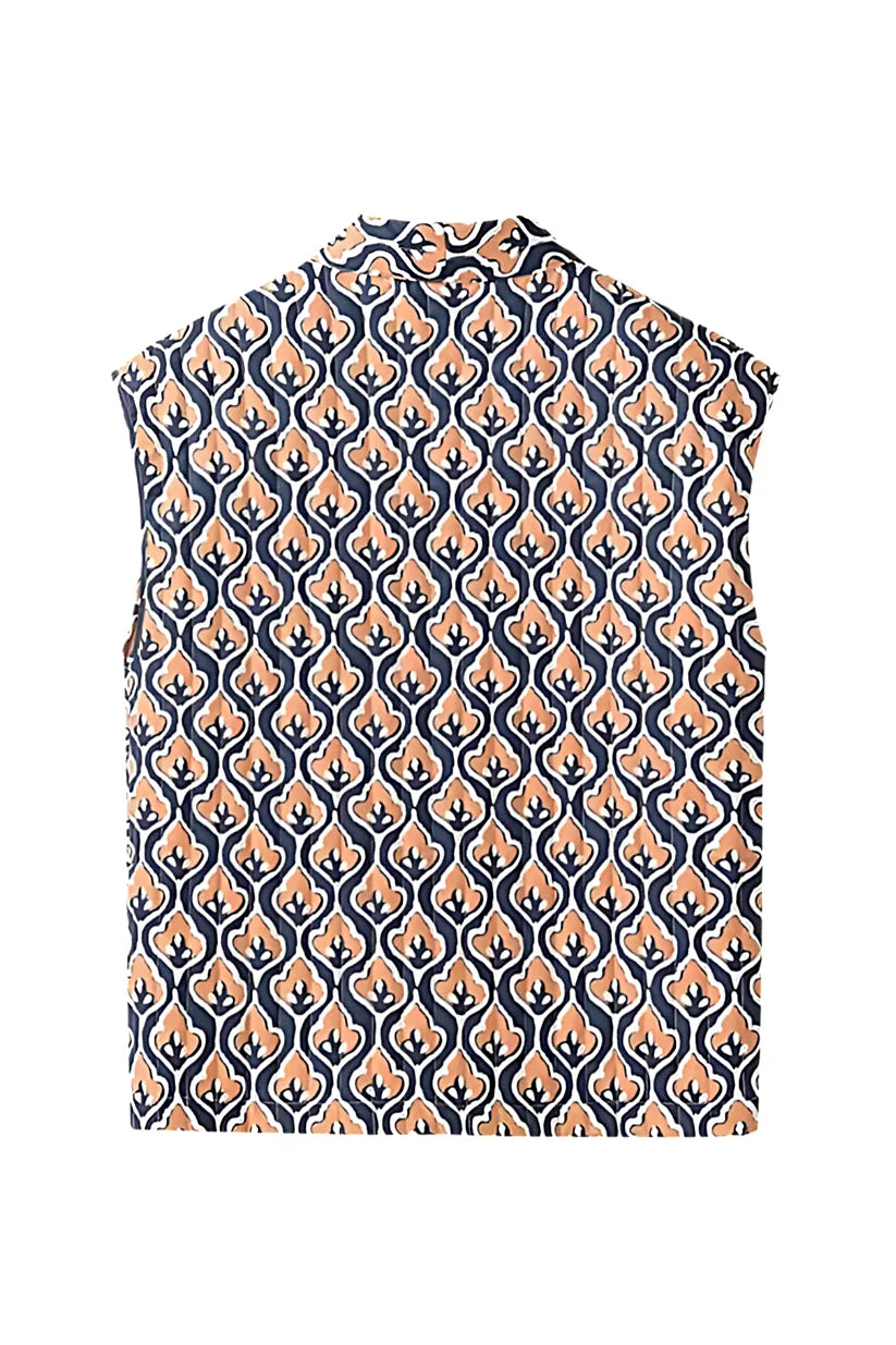Perfect for layering over shirts or blouses, this versatile vest transitions seamlessly from work to weekend outings. Its modern design and unique print ensure you stand out with elegance and ease, making it an essential piece for a polished, fashionable appearance.