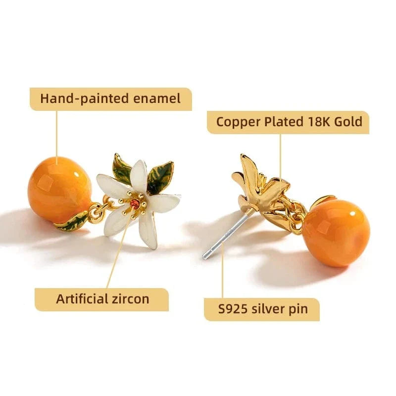 Expertly crafted with 925 sterling silver needle, these Neveah Earrings feature intricately designed Orange Gardenia drops. Delicate and sweet, they add a pop of color and feminine charm to any outfit. Perfect for the modern woman with a love for nature-inspired jewelry.