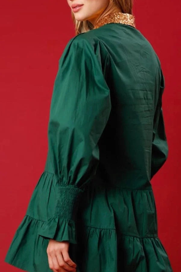 Nutcracker Sequined Button Down Long Sleeve Mini Dress