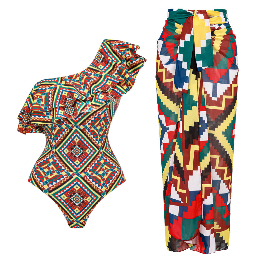 One Piece Swimsuit Bikini Ruffled Printed Swimsuit Chiffon Dress