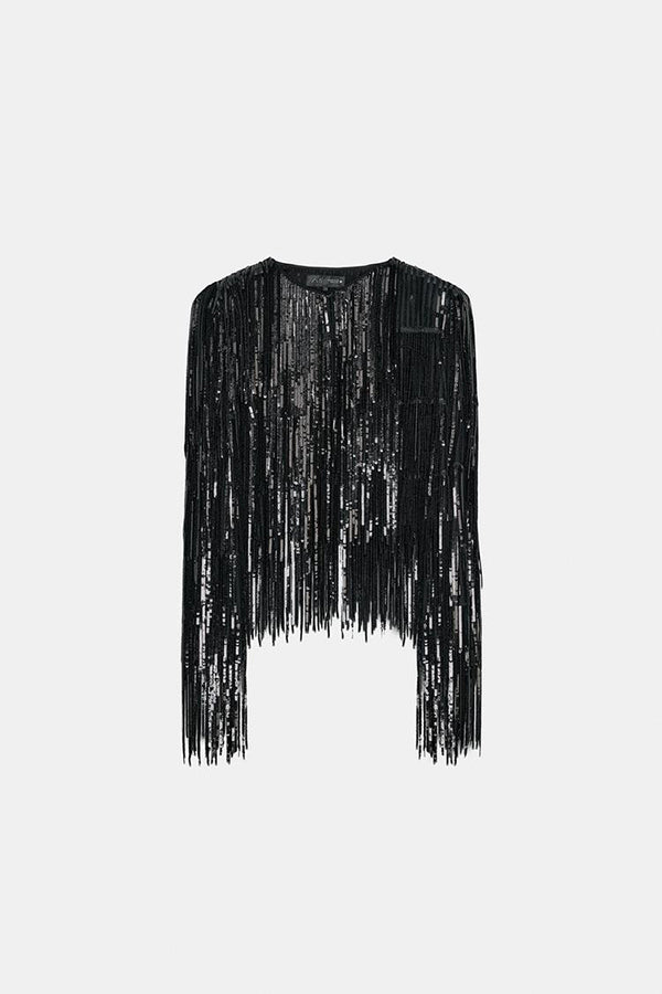 Party Crasher Layered Sequined Tassels Long Sleeve Loose Jacket