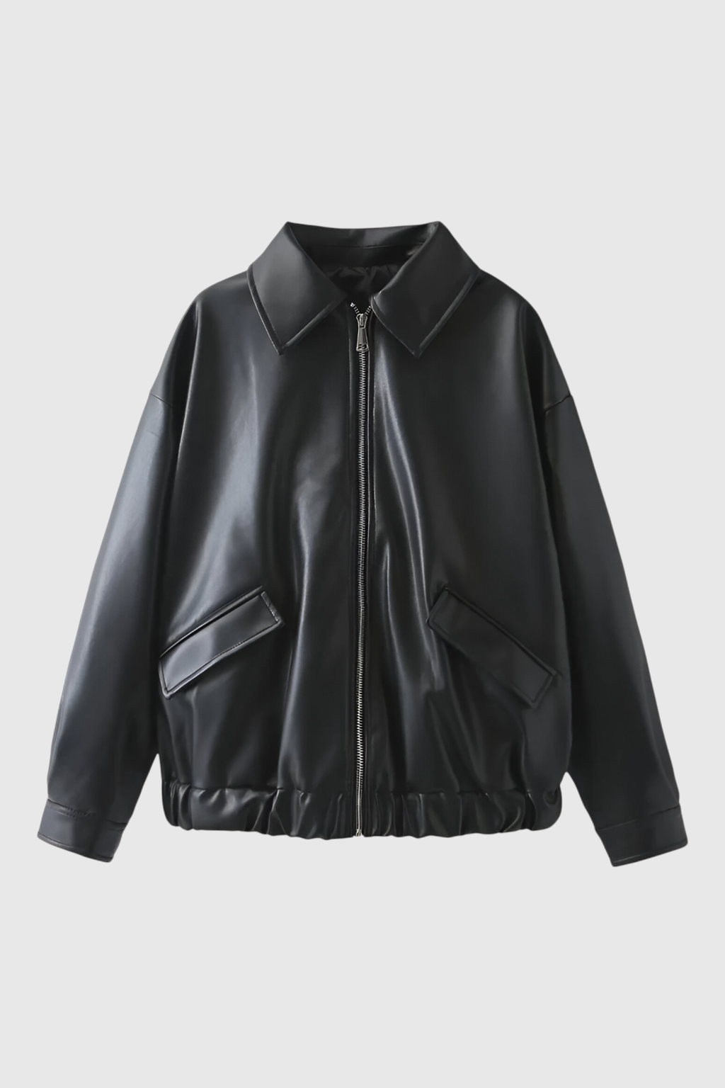 Relaxed Faux Leather Jacket | Zip Front And Elastic Hem