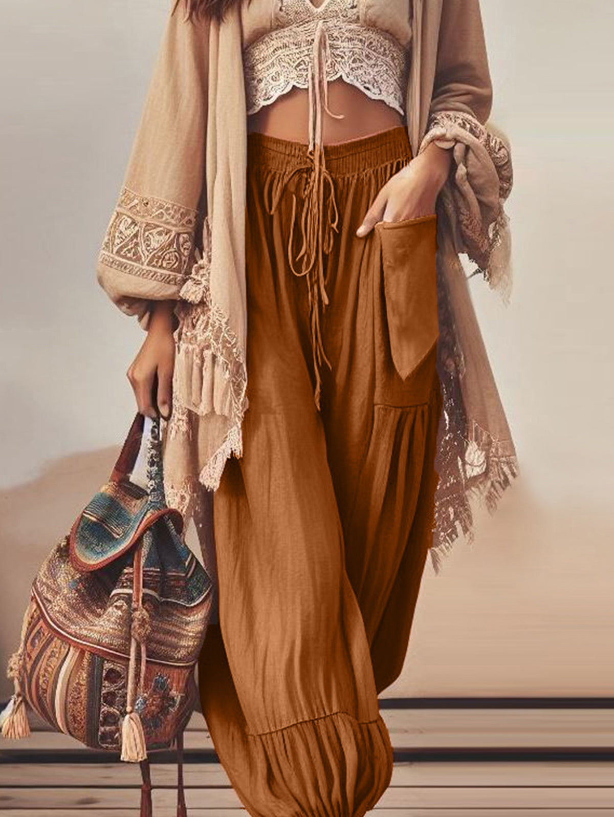 Details: Drawstring Waist, Pocket, Fold