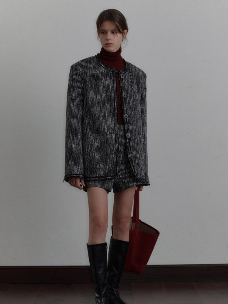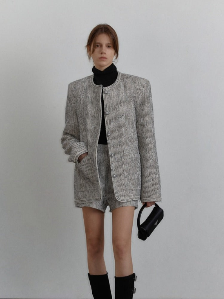 Step into sleek sophistication with our Round Neck Striped Blazer. Featuring a chic round neck design and classic stripes, this blazer effortlessly elevates your professional or casual look. The tailored fit and high-quality fabric ensure comfort and style throughout the day. Perfect for pairing with trousers, skirts, or jeans, it adds a polished finish to any outfit. Shop now and enhance your wardrobe with this versatile and stylish blazer!