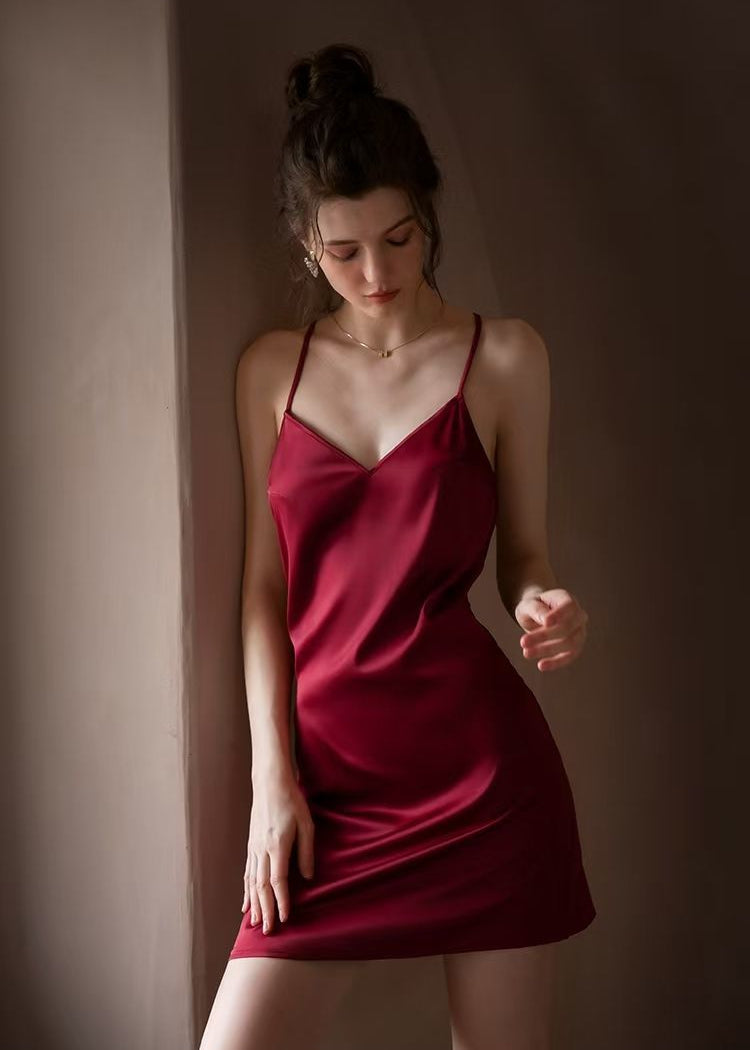 Scarlet Whisper is a sultry satin nightdress designed for women who favor sophistication with a bold edge. Crafted from silky-smooth fabric, this backless slip dress features delicate shoulder straps and a plunging open back that skims the skin with a barely-there feel. The sleek silhouette hugs gently without clinging, offering a flattering drape that enhances natural curves. Lightweight and breathable, it's perfect for warm nights or lounging in luxury.