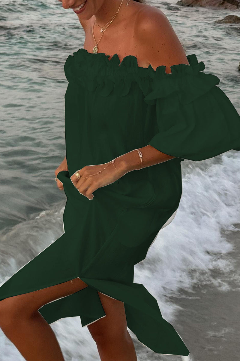 Sexy Solid Slit Fold Off the Shoulder Beach Dresses(5 Colors)