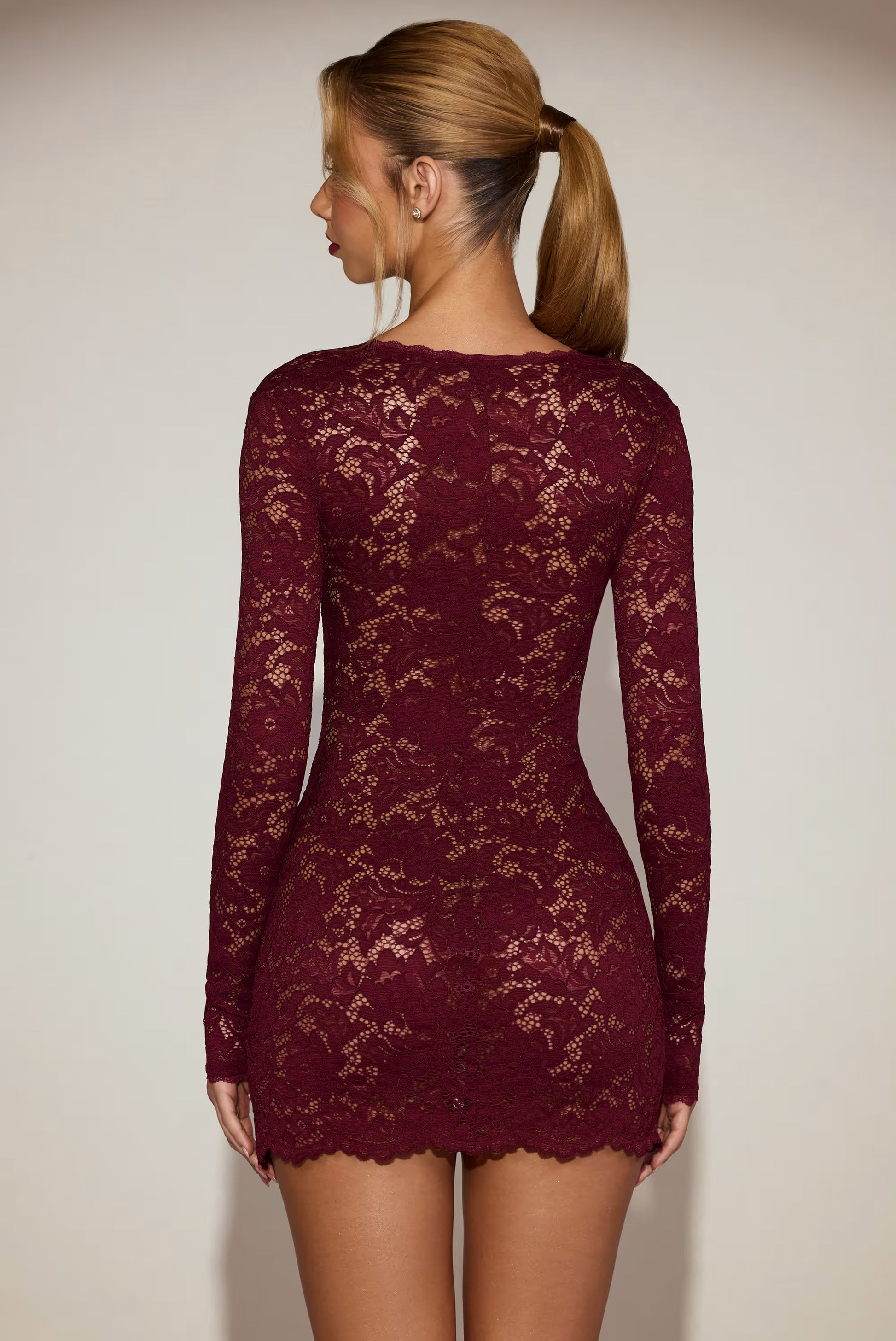 Sexy U Collar Long Sleeve Lace Dress