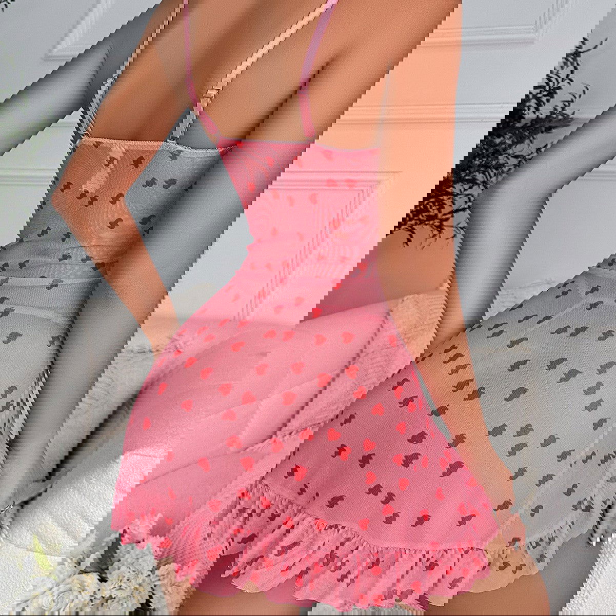 Sling Peach Love Sweet Lingerie Mesh Two Piece Set