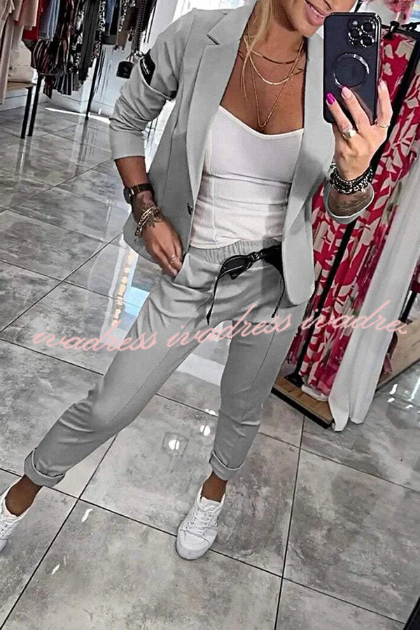 Smart Casual Lapel Blazer and Elastic Waist Tie Pocket Pants Set
