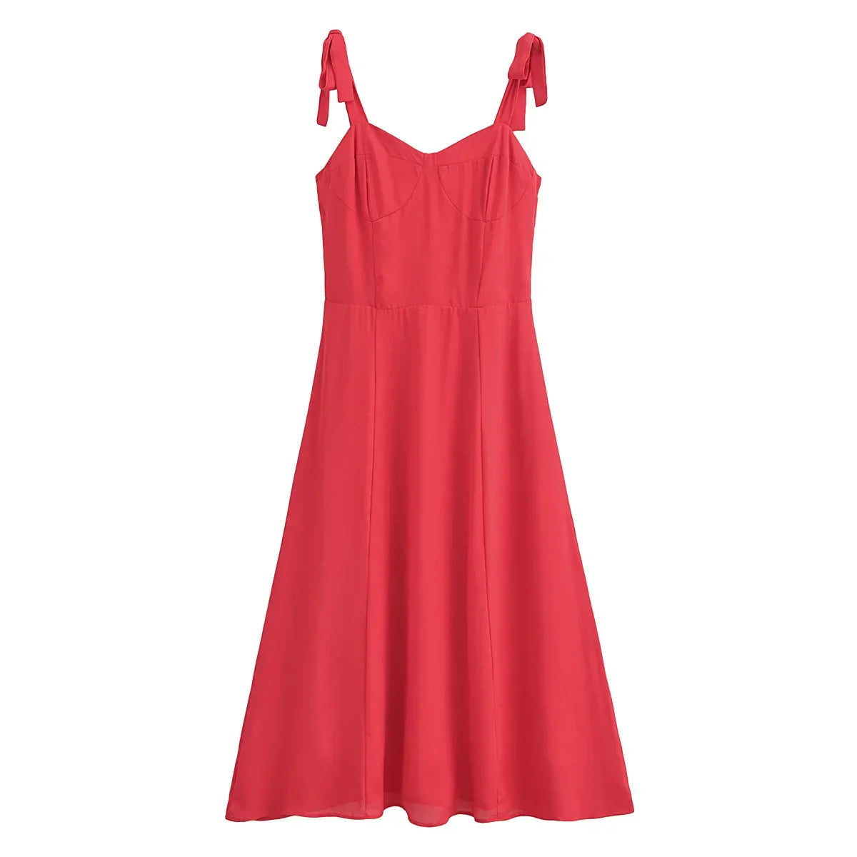 Solid Red Tie Bow Strap Midi Dress