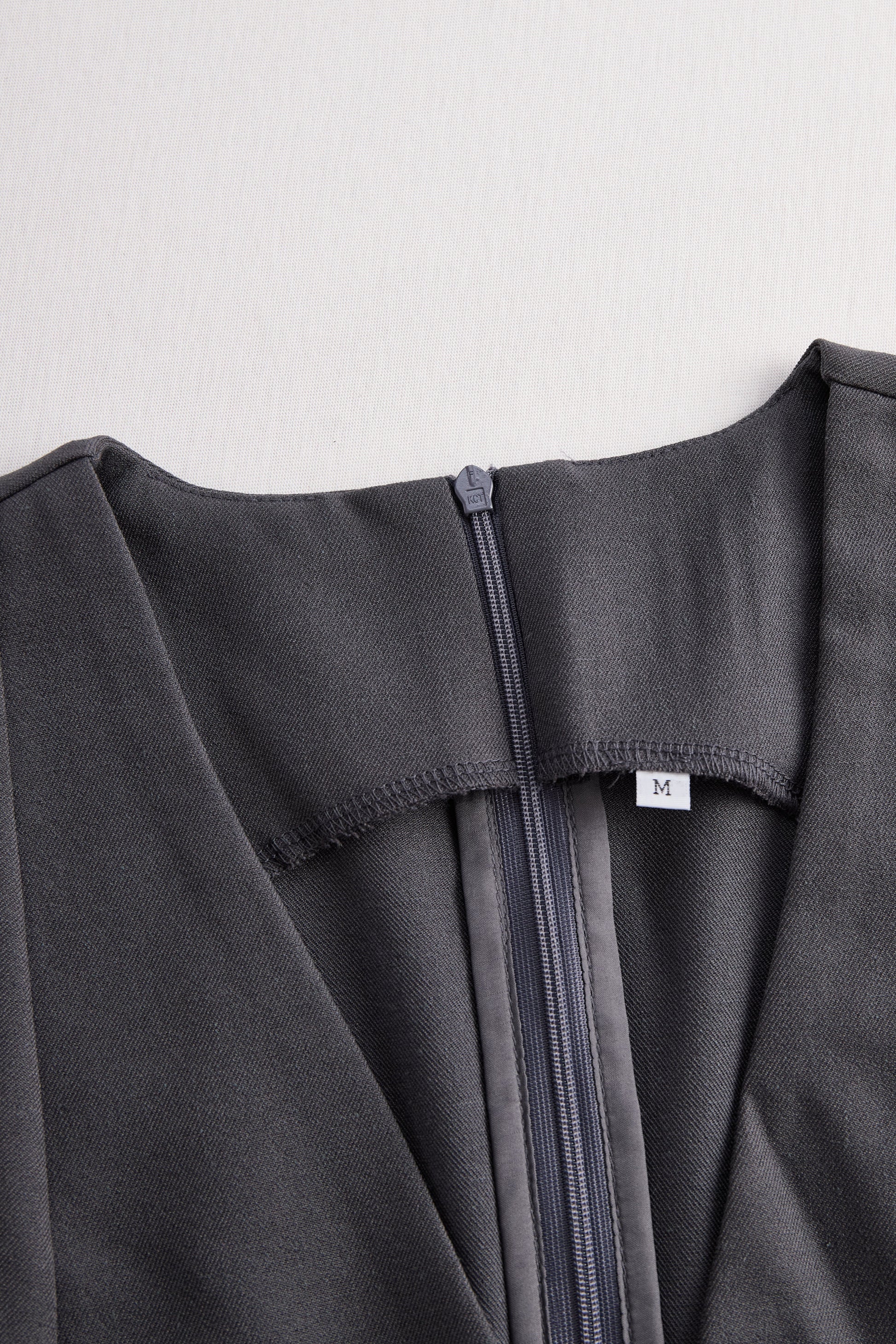 Mooyius presents the elegant sleeveless peplum jumpsuit, expertly tailored in a sleek charcoal gray. Designed with a deep V-neckline and structured peplum waist, this piece offers a refined silhouette that flatters your figure and brings a touch of modern glamour to any event. It’s the perfect choice for business meetings, evening gatherings, or any occasion where you want to make a bold, confident impression.