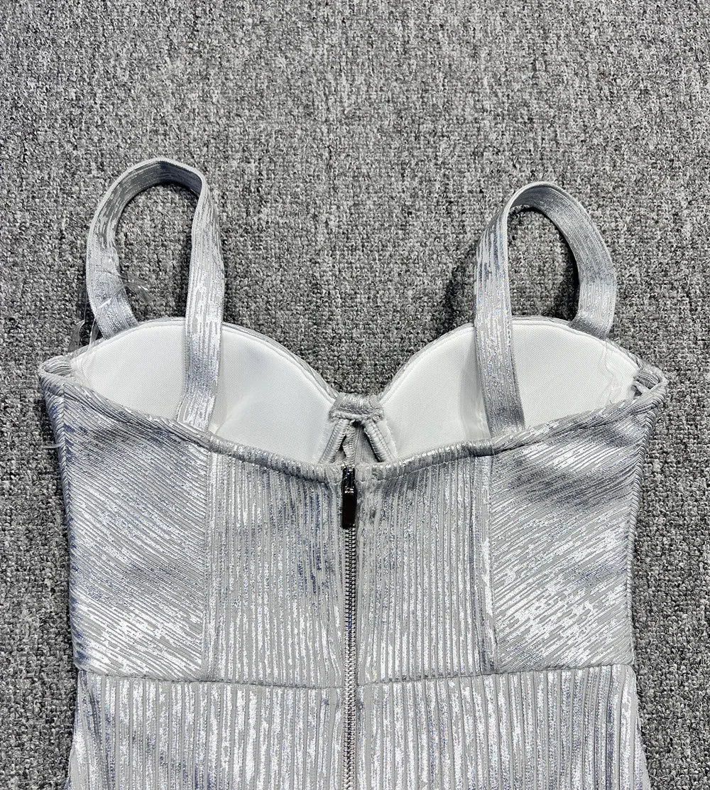 Spaghetti Strap Sleeveless Silver Midi Dress