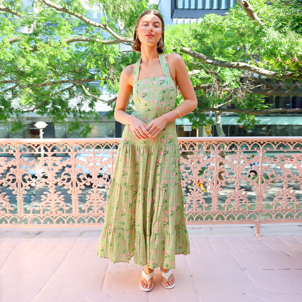 Sweet Printed Sleeveless Halter Big Backless A line Dress
