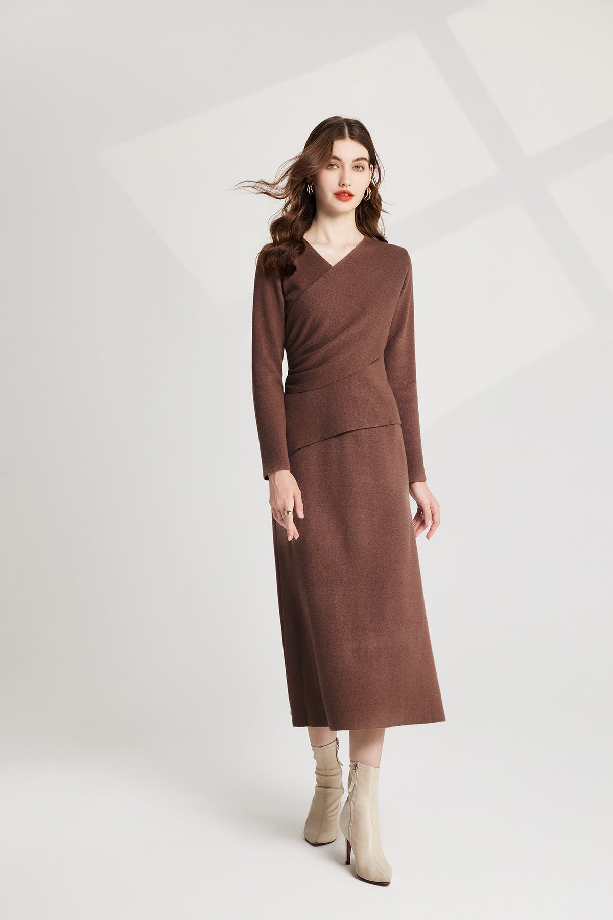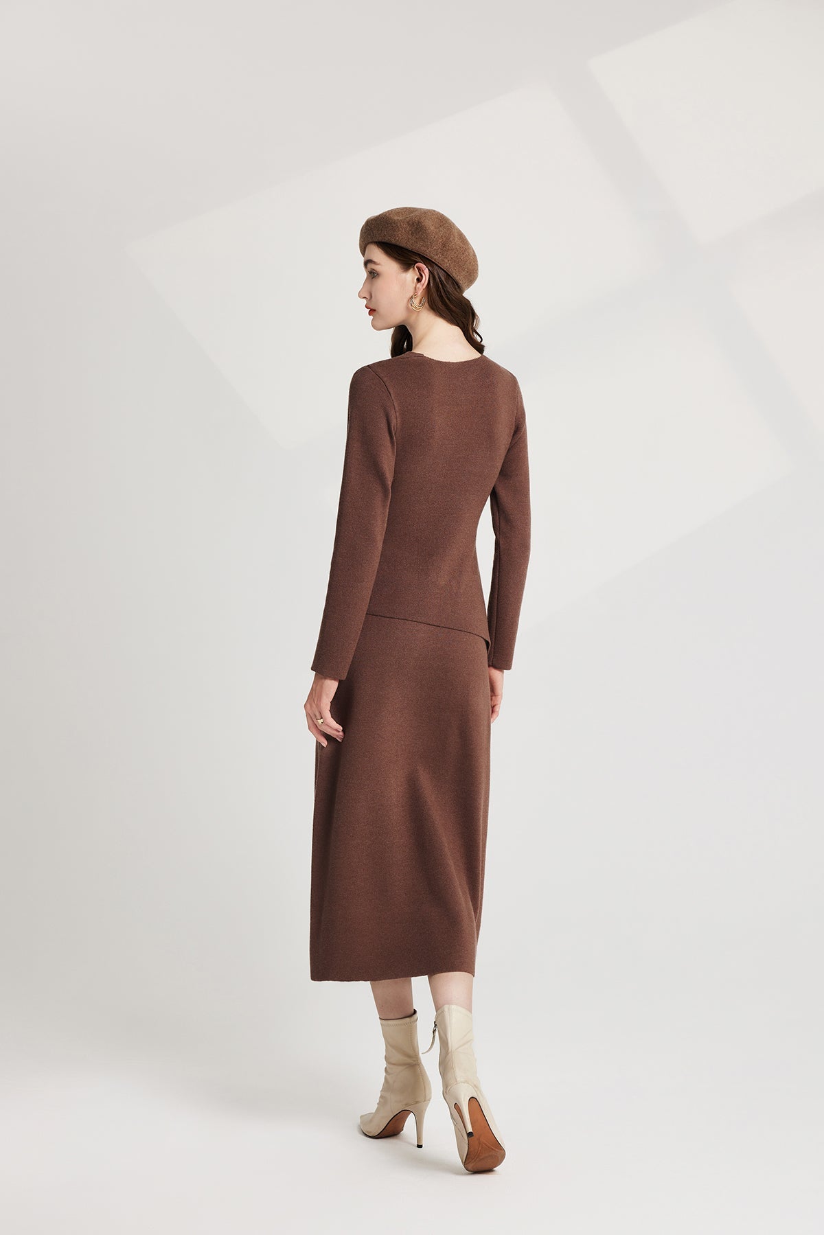 Thickened Base Knitted Sweater Vest Dress Two Piece Set