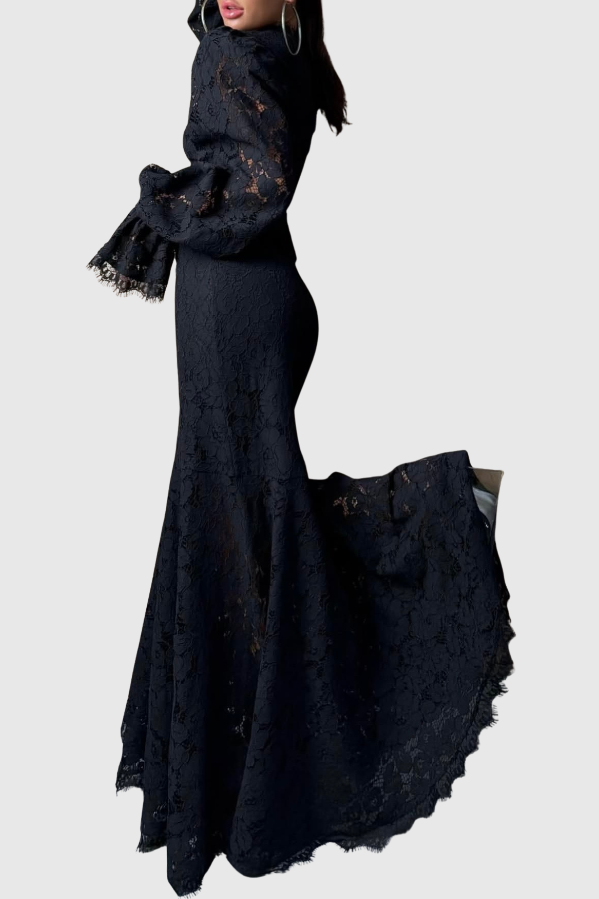 Umeko Lace Blouse & Maxi Skirt Set - Black