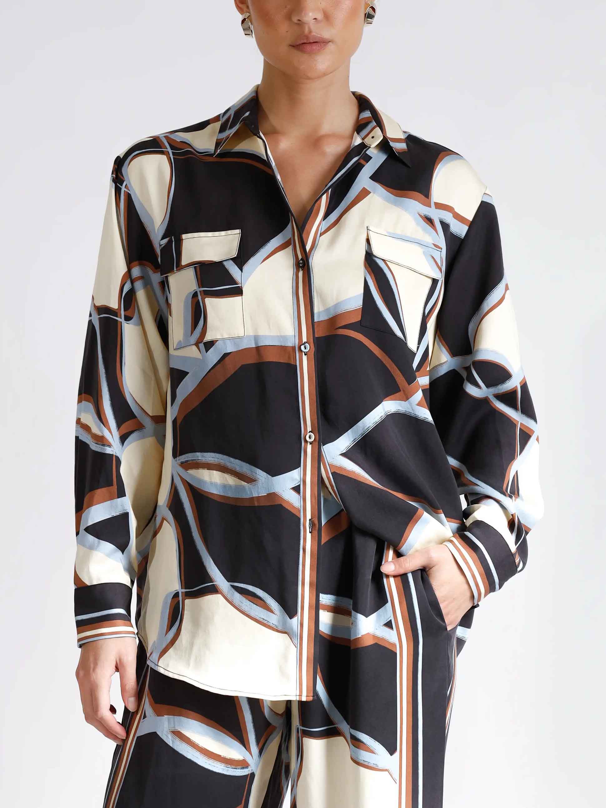This artistic button-down shirt combines modern design with an effortless style in a unique abstract print that reflects your bold personality. The long sleeves and loose fit combine comfort and sophistication, making it a great choice for formal or casual occasions.