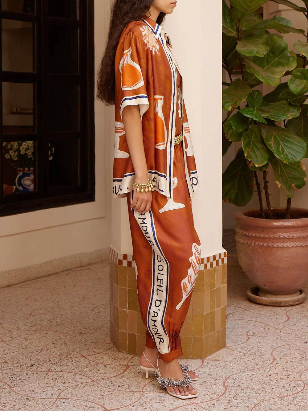 Elevate your wardrobe with our Unique Satin Art Pattern Printed Stand Collar Loose Button Shirt. Designed for those who appreciate artistry and comfort, this shirt combines elegance with a relaxed fit. Perfect for both casual outings and more formal occasions. Pair it effortlessly with jeans or tailored trousers.
