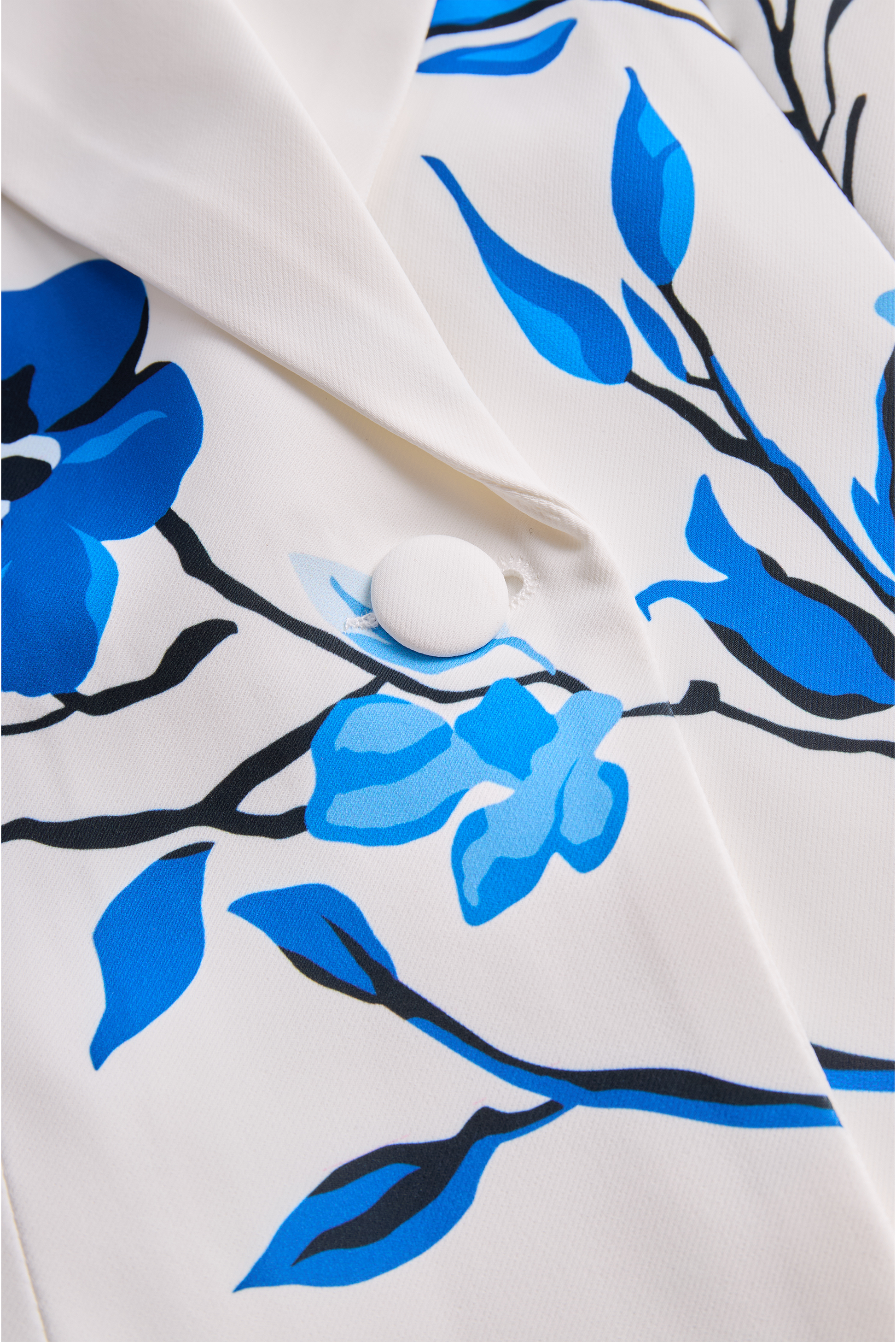 Urban Sleeveless Floral Printed Blazer and Trousers Set