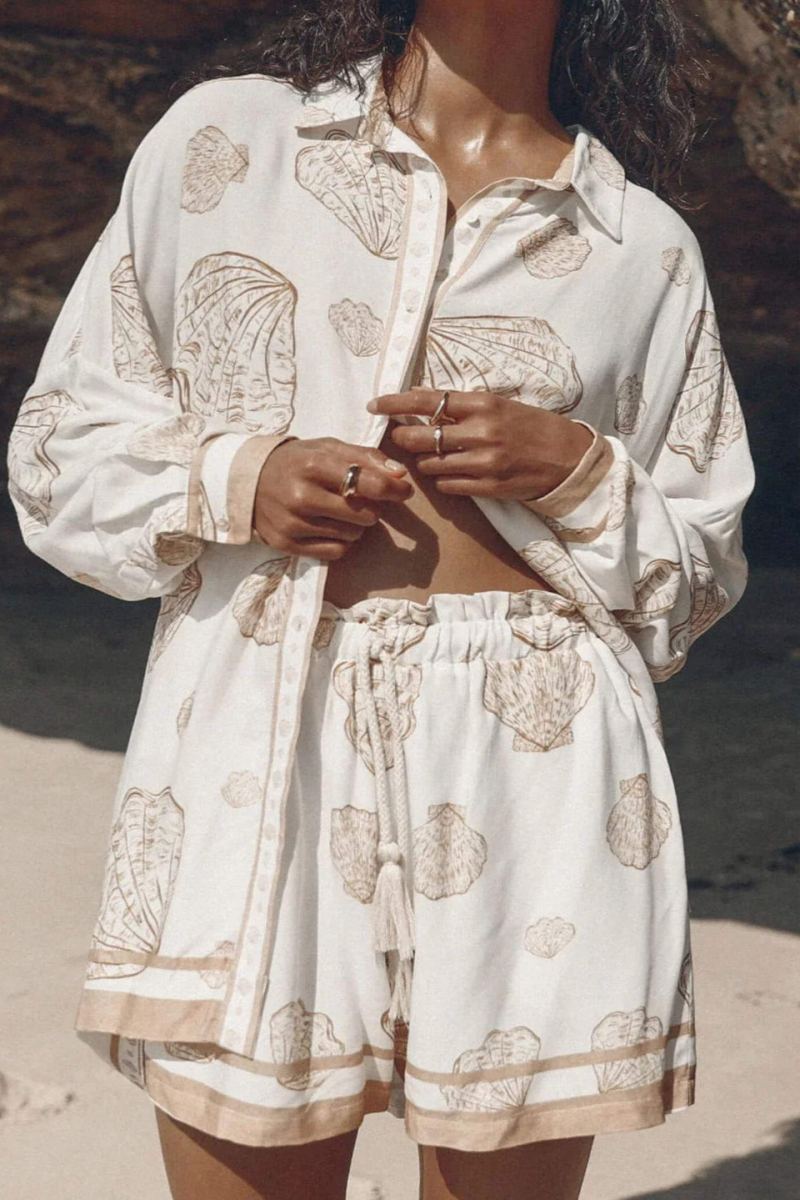 Vacation Shell Print Elastic Band Shorts-Set