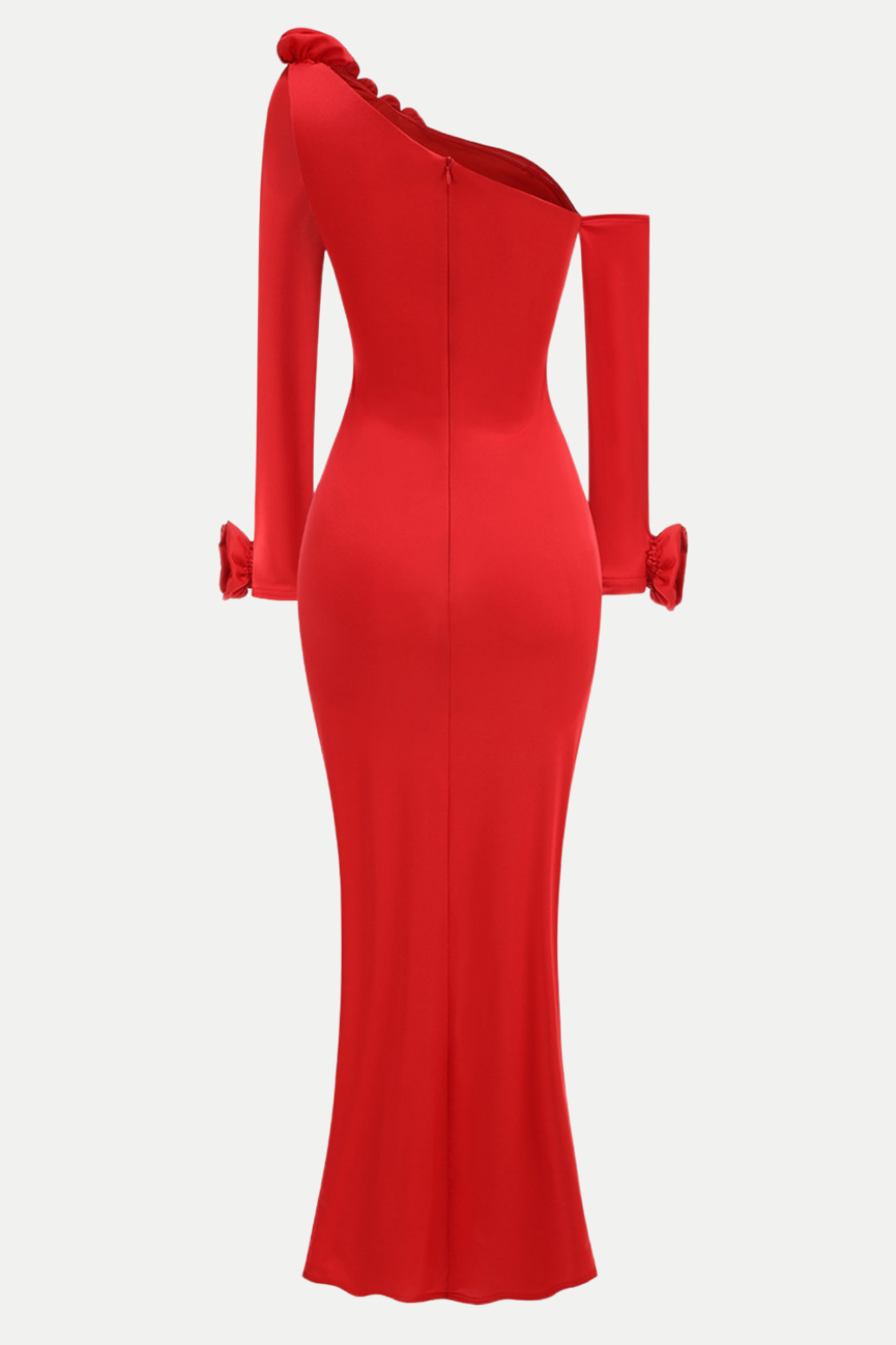 Indulge in effortless luxury with the Yates Floral Off Shoulder Maxi Dress. This exquisite dress features an elegant off shoulder design and a stunning 3D flower. Its flowing maxi length and lightweight fabric make it perfect for any special occasion. Elevate your style and turn heads with this exclusive piece.